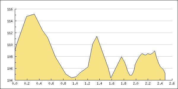 | összesen | 2 484 m | 21 m | 25 m | 37' |